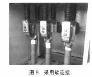 (2)穿墻套管下部與電纜銅搭子導體部分聯接選用軟聯接過渡,如圖9所示,可以去除硬聯接發生的應力,一起消除電纜通電后發生的電動力,隔絕了對穿墻套管的應力作用。